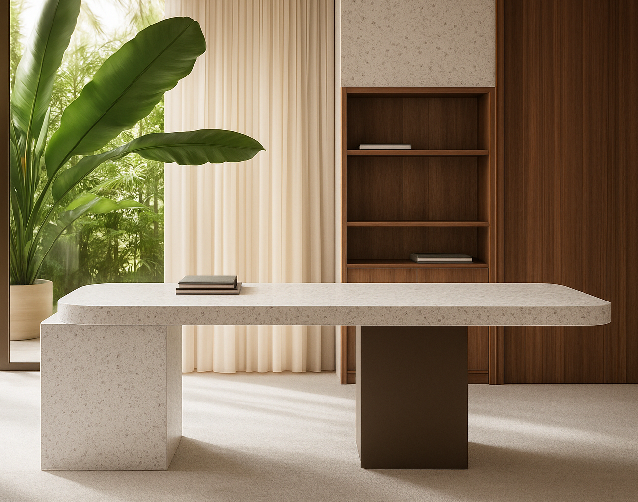 Konglomerat kwarcytowy to połączenie naturalnego kamienia i żywic, które zapewnia wyjątkową trwałość i bogactwo kolorów. To materiał idealny do nowoczesnych wnętrz.